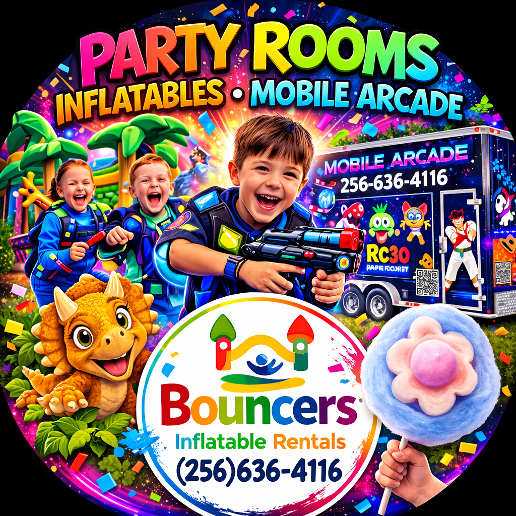 Welcome to Bouncers Inflatable Rentals, your trusted source for bounce house rentals, water slides, party rooms, laser tag, and mobile arcade entertainment in Cullman, Alabama.