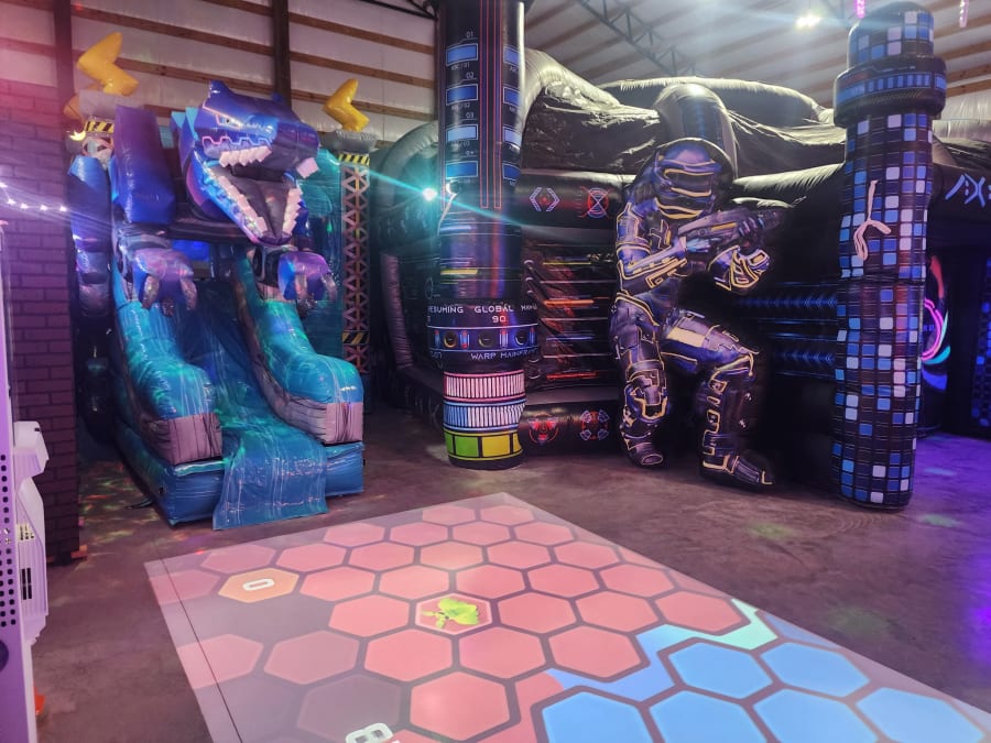 Want to Battle it out with a game of Laser Tag with family and friends? We've got you covered! Our indoor Laser Tag party room, located in Good Hope, AL, features a huge inflatable Laser Tag Battle Dome complete with everything required to play (laser guns with customizable settings and chest plates.)