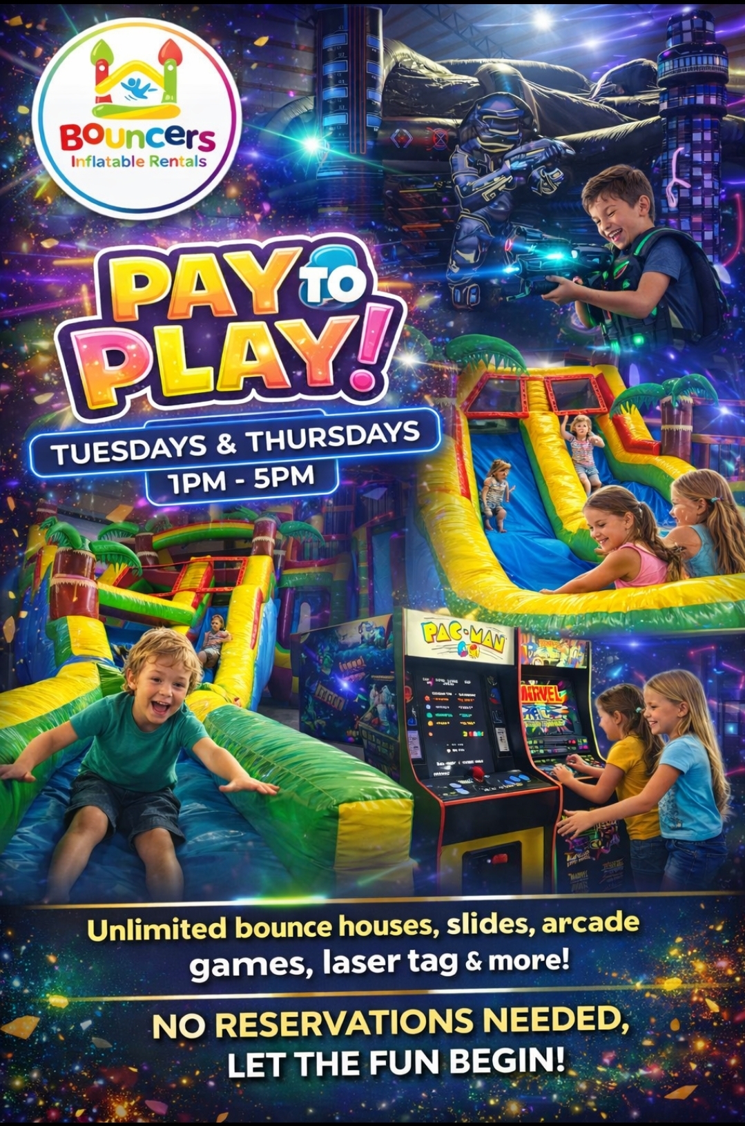 Pay-to-Play is available every Tuesday and Thursday from 1:00 PM to 5:00 PM, beginning on March 26th, 2026.