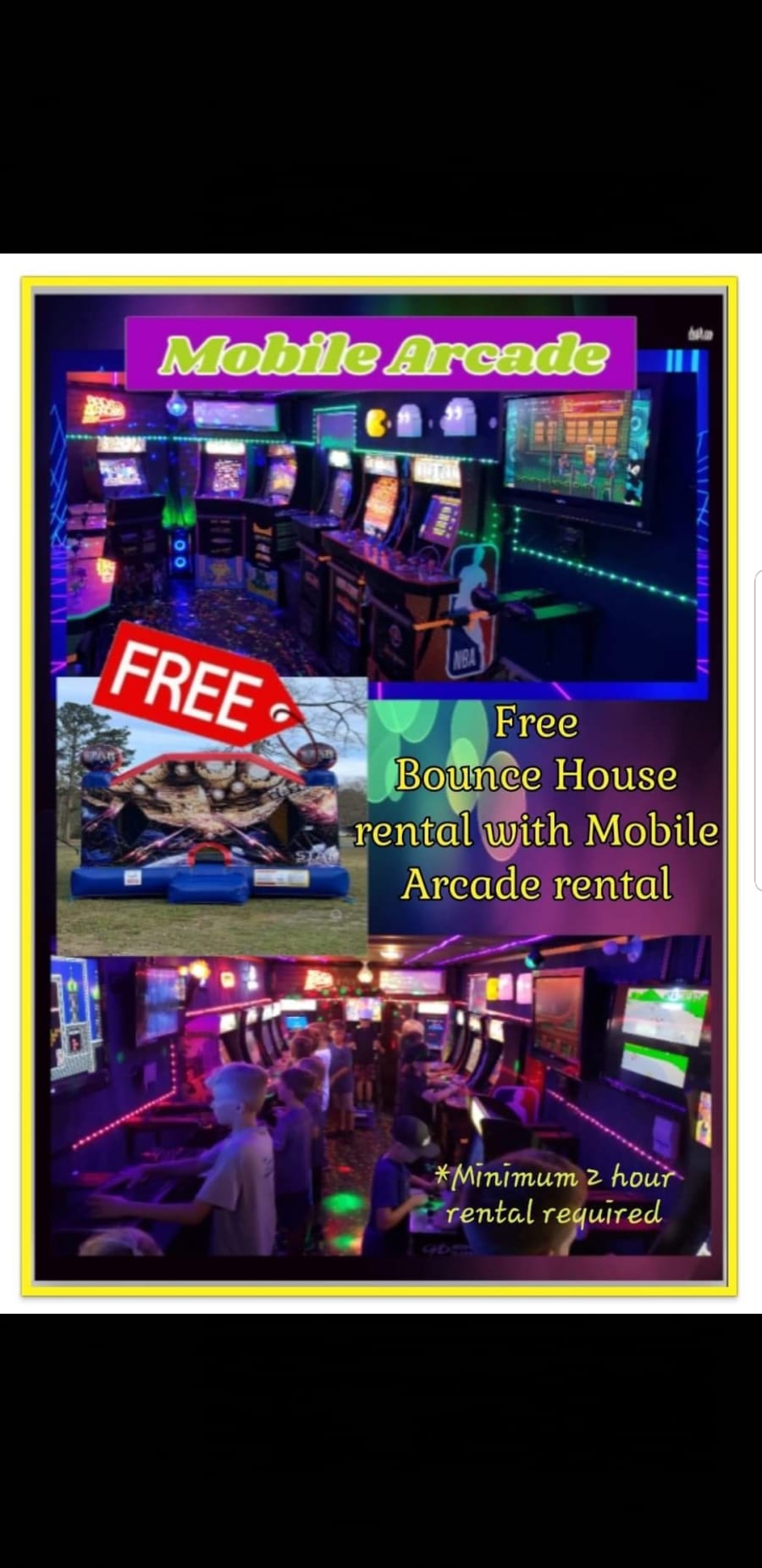**CURRENT SPECIAL! FREE BOUNCE HOUSE RENTAL INCLUDED WITH MOBILE ARCADE RENTAL!**