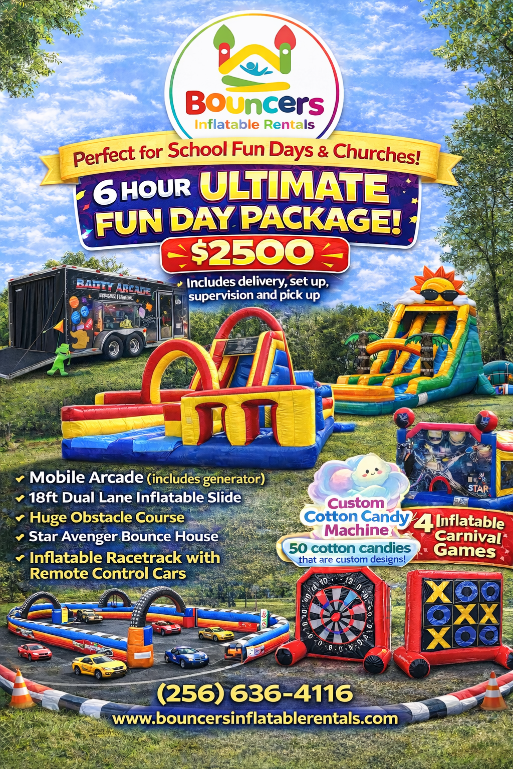 If you're planning a school field day, church festival, or company fun day in Cullman Alabama, Bouncers Inflatable Rentals has the inflatables and entertainment you need to make the event a success.